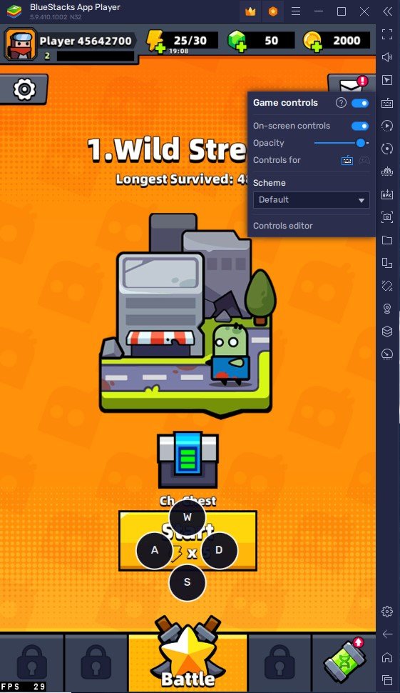 在游戏中,单击右侧 BlueStacks 菜单栏中的键盘图标。这将允许您启用和禁用屏幕控制选项。这将帮助您确定使用哪些键盘按键在 PC 上玩 Survivor.io。