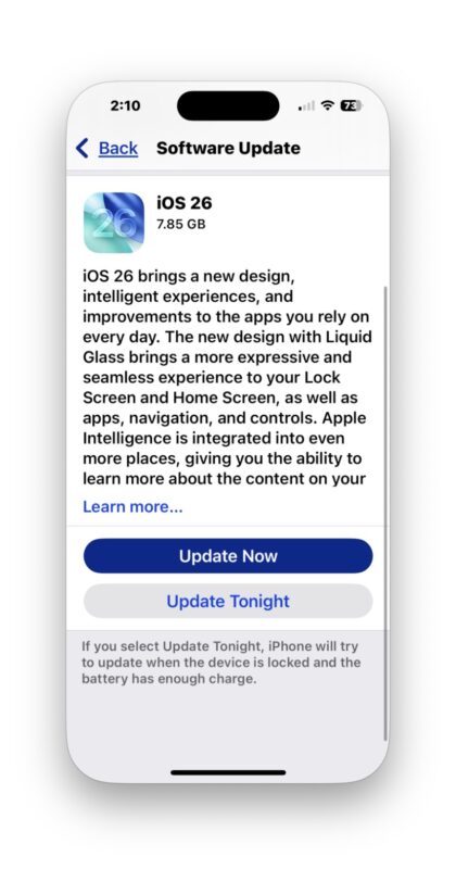 如果您一直在运行 iOS 26 Beta 版本,则 RC 版本已经可供您使用,但否则您可以直接从 Beta 版本更新到 iOS 26 Final。安装最终版本后,您可能希望在设备上的软件更新设置中禁用未来的测试版更新。