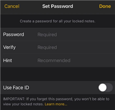 - 单击“锁定便笺”并输入便笺的密码和密码提示。