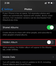 - 最后,点击“隐藏相册”选项并将其关闭。