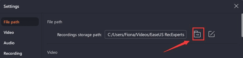 - 单击“文件路径”选项卡,然后选择要保存录制视频的路径。