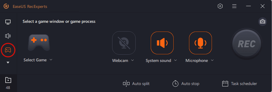 - 在 EaseUS RecExperts 窗口中,选择游戏录音机(游戏控制器图标)从左侧。