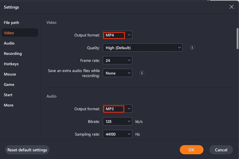 - 单击“视频”选项卡,然后选择质量(最高 4K)和 FPS 计数(最高 144 fps)。您还可以选择首选的输出格式。