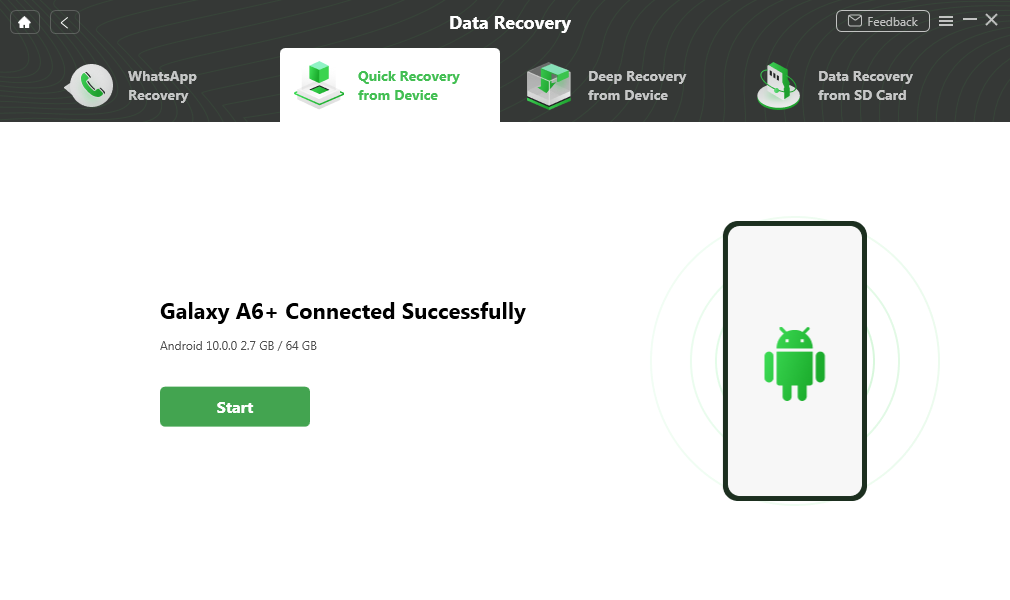 请记住在恢复出厂设置后停止使用 Android 设备,以免新生成的数据覆盖“已删除”的数据。在这种情况下,您应该在恢复出厂设置后通过“从设备深度恢复”模式返回第一步恢复数据。