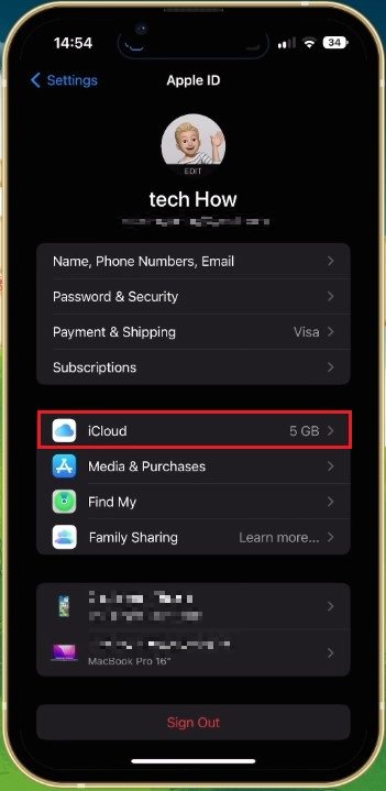 用户有时会在 iCloud 或其他位置备份已删除的 Snapchat 照片、视频和消息。要恢复已删除的 Snapchat 文件或备份当前文件,请关闭应用程序并打开您的设置。在 iOS 设备上,导航到您的苹果ID并点击iCloud。