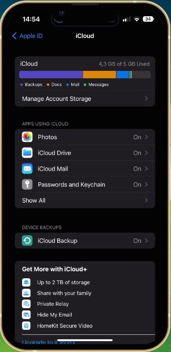 在这里,选择管理帐户存储,您应该能够从这里备份您的设备。