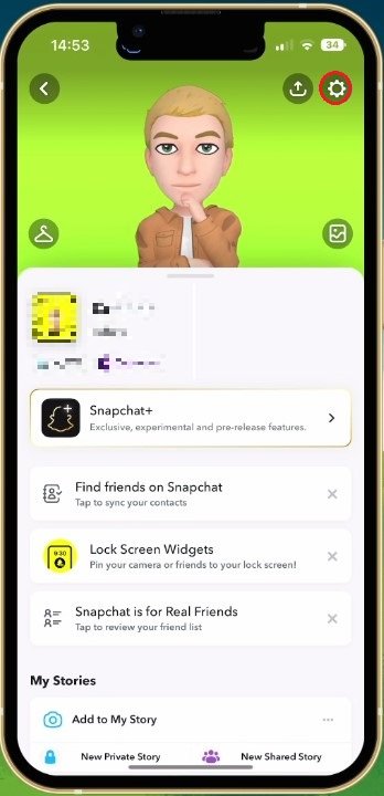 打开 Snapchat 并点击屏幕左上角的个人资料图标。从此处导航至您的 Snapchat 帐户设置。