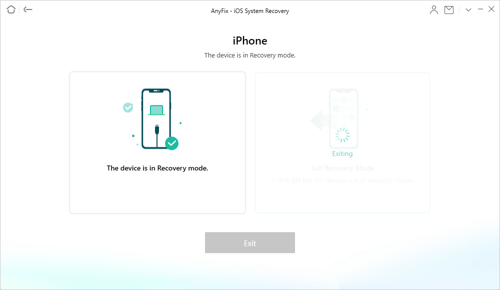 步骤 3. 单击出口再次,AnyFix 将帮助您退出恢复模式。等待几秒钟。