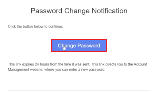 收到验证电子邮件后,单击其中嵌入的“更改密码”链接。此链接是您重新获得帐户访问权限的下一步。