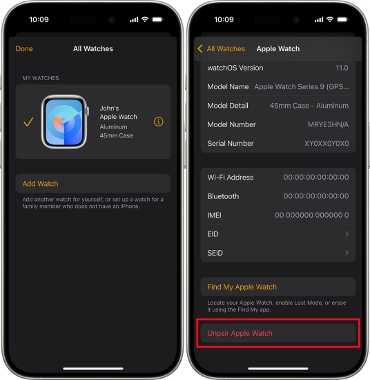 方法 1. 通过 Watch App 摆脱锁定给所有者的 Apple Watch