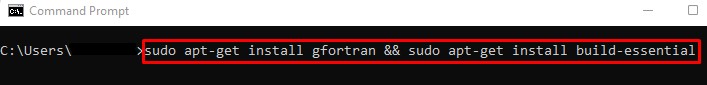 步骤2:输入此命令提示符”sudo apt-get install gfortran && sudo apt-get install build-essential” 不带引号。