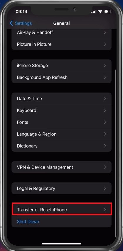 完成所有这些后,您将可以选择在重置设备时备份设备。为此,请返回主设置并点击一般的。接下来,选择转移或重置 iPhone和删除所有内容和设置。