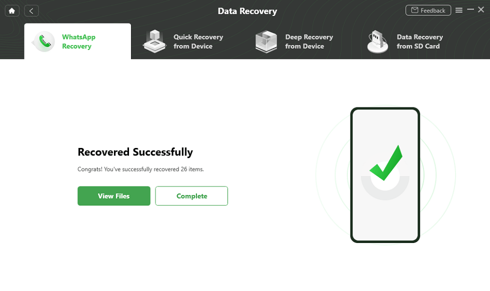 它实际上使用内置的智能算法来查找和恢复手机上已删除的内容,包括您的 WhatsApp 消息。您只需告诉应用程序您想要恢复什么,它就会为您处理剩下的事情。
