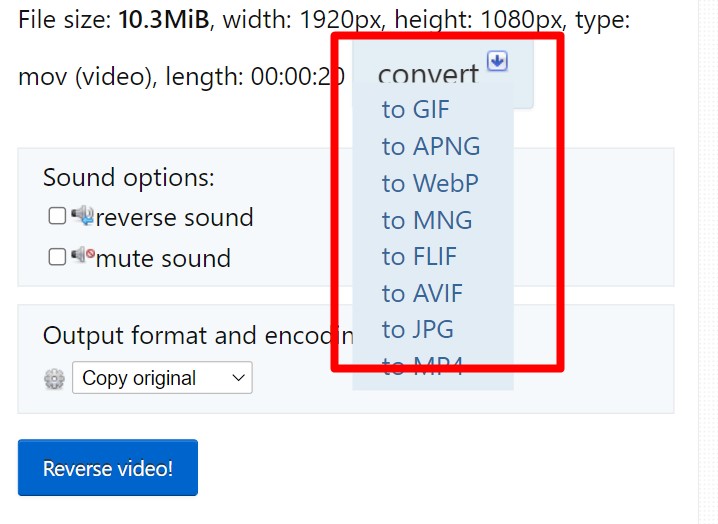 要在不下载应用程序的情况下反转视频,您必须访问在线服务,例如www.ezgif.com。您可以尝试的另一个网站是Clideo.com。您可以直接在这些网站上上传视频、设置视频格式、预览视频,然后将其下载到您的手机。