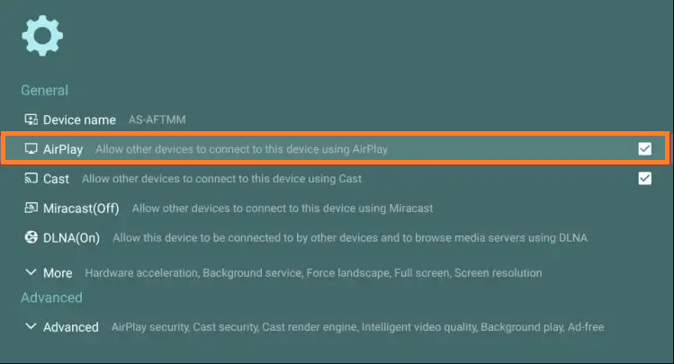 4. 选择AirPlay 复选框在 Firestik 上启用 AirPlay