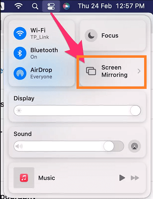 5. 从应用程序启用 AirPlay 后,获取您的 iPhone 或 Mac 并打开控制中心。