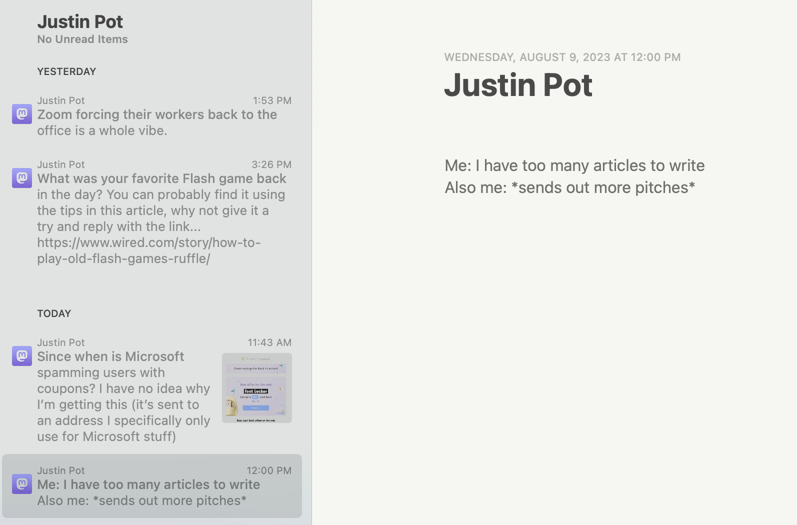Mastodon RSS 提要在 RSS 阅读器中的样子。贾斯汀·波特的科普