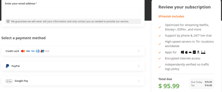 - 选择一个 IPVanish 计划并单击“现在开始”。