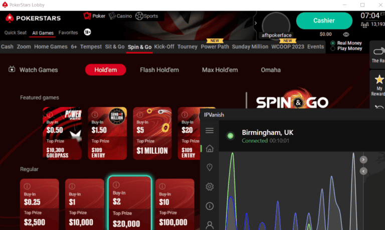 我用 PokerStars 测试了 IPVanish 以确保它有效。我发现一些服务器脾气暴躁(更多内容见下文),但如果您发现“甜蜜点” 锅是你的了!