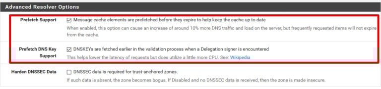 - 在“高级旋转变压器选项,“ 查看 ”预取支持“ 和 ”预取 DNS 密钥支持”。
