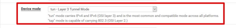 - 改变“设备模式“ 到 ”tun – 第 3 层隧道模式”。