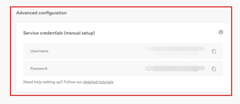 - 将用户名复制并粘贴到“用户名”部分。对密码执行相同的操作并将其粘贴到“密码”部分中的“用户认证设置”。
