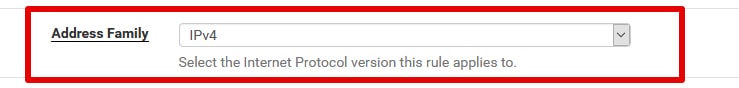 - 单击“地址族”下拉菜单并选择“IPv4”。