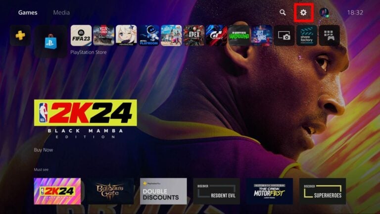 - 启动你的 PS5 并转到“设置”,点击右上角附近的小齿轮图标。