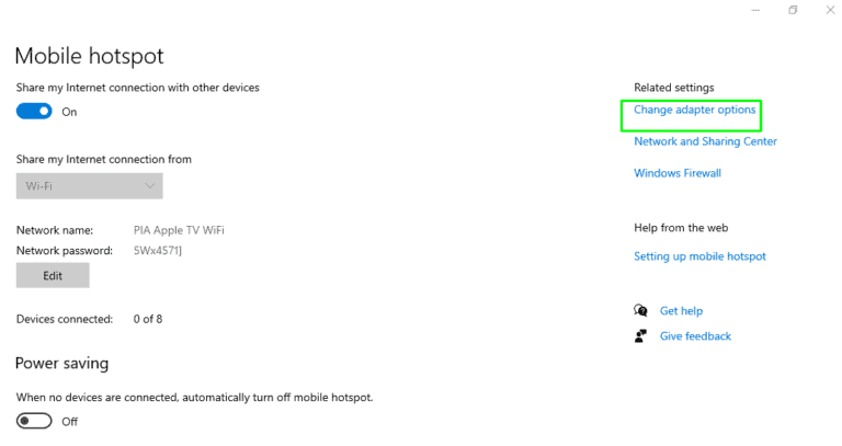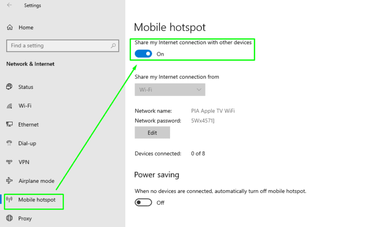 只需在 Windows 10/11 计算机上安装 PIA 应用程序,启用 Internet 连接共享 (ICS),然后打开移动热点。