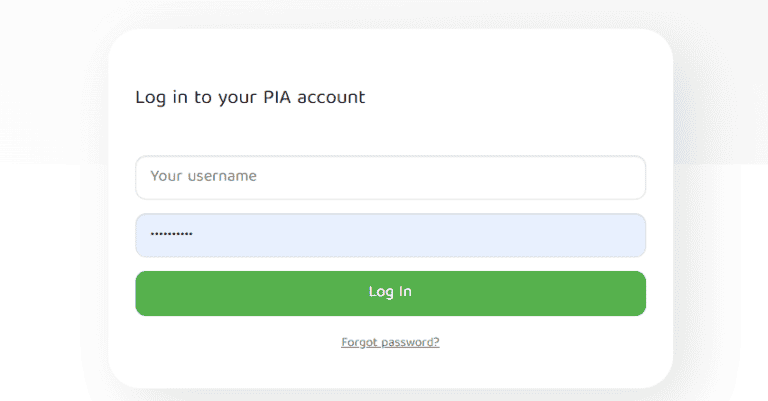 - 启动VPN申请并输入您的PIA 用户名和密码登录。