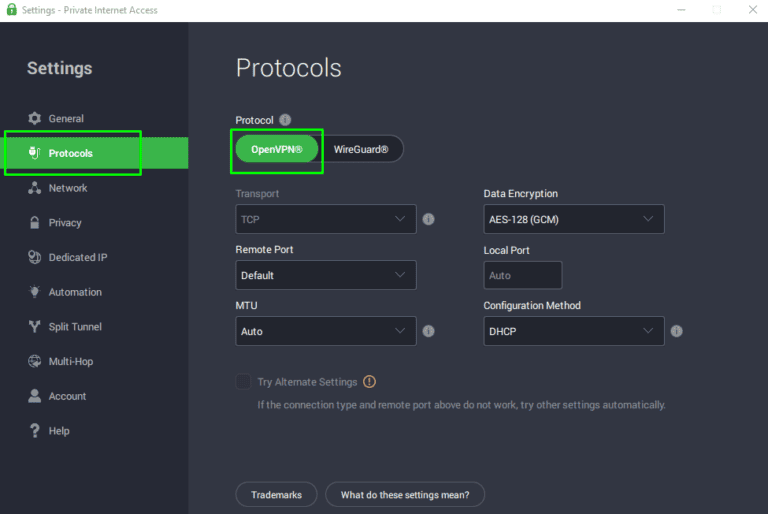 - 点击协议并选择开放VPN。