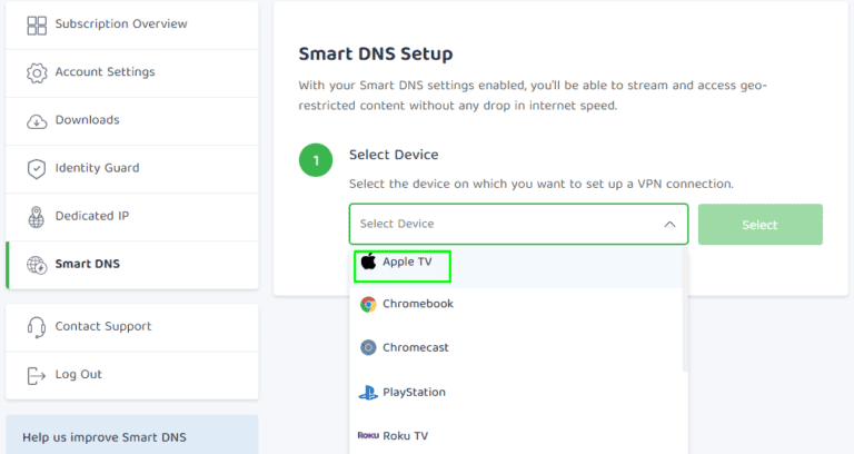 在 Apple TV 上设置和使用私人互联网访问 (PIA) 的最简单方法是通过其智能 DNS 服务。