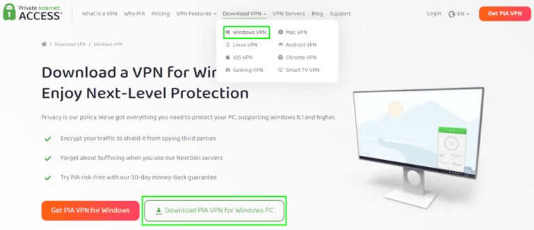 - 下载并在 Windows PC 上安装 Private Internet Access VPN 应用程序。