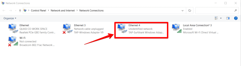 - 右键单击 Surfshark 的网络适配器并选择“特性”。