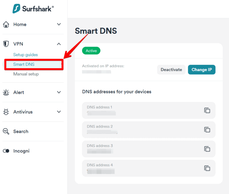 - 选修的:如果您找不到智能 DNS 地址,请联系 Surfshark 支持人员,他们会尽快为您解决。