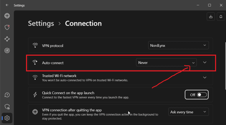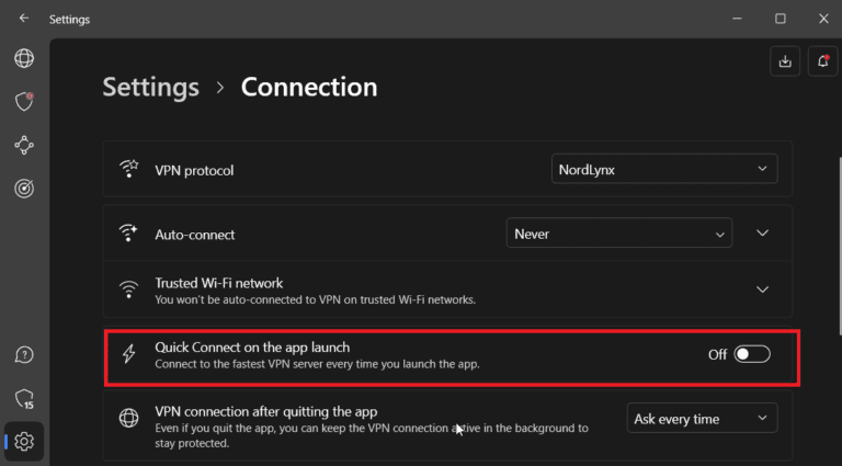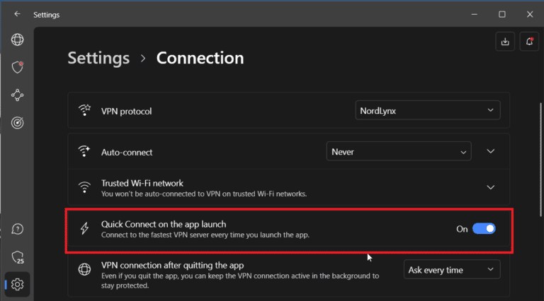 同样,您可以将 PC 配置为在启动时自动打开 NordVPN,从而触发服务器连接。