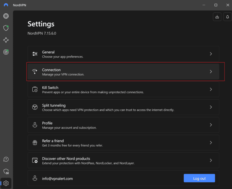 - 将协议更改为北山猫,NordVPN 的内部协议,可提供更好的安全性和性能。