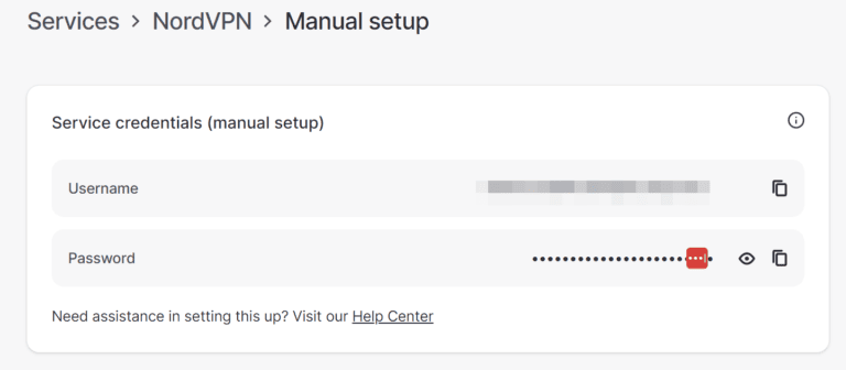 - 去你的Nord 帐户仪表板并点击“手动设置 NordVPN”在页面的末尾。