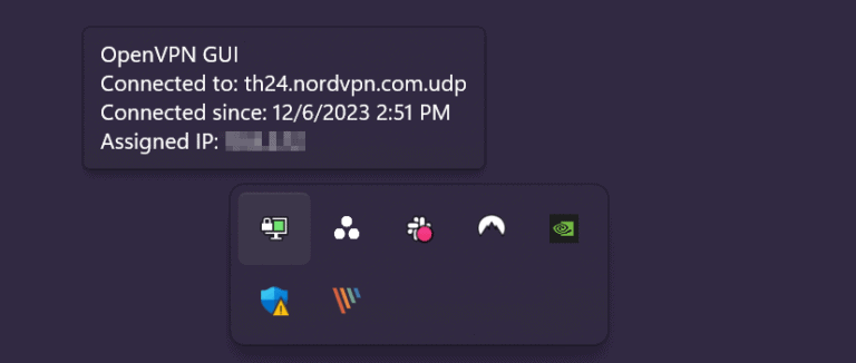 - 等待系统托盘中的 OpenVPN GUI 图标应用程序变为绿色,这意味着它已成功连接。