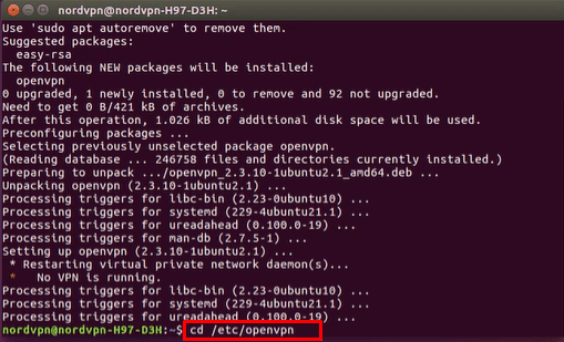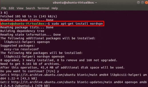 现在输入以下命令来安装 NordVPN 客户端软件: