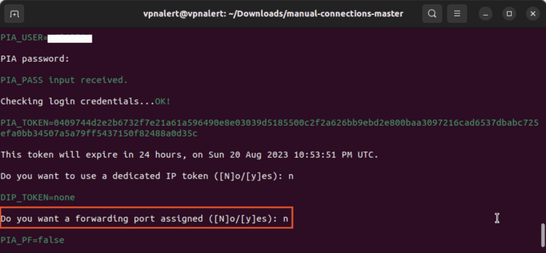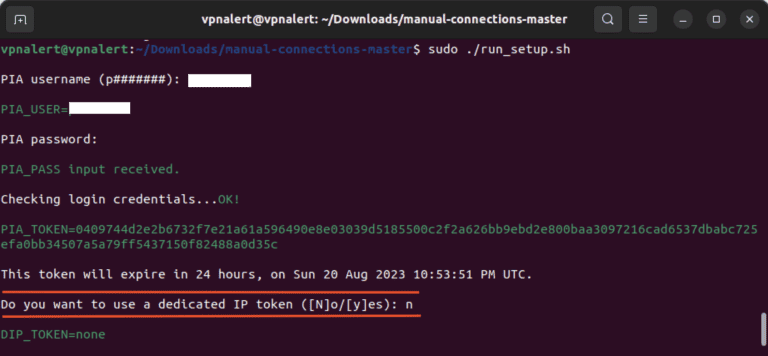 - 安装 jq 后,使用命令“重新运行脚本”须藤./run_setup.sh”并输入您的 PIA 用户名/密码。