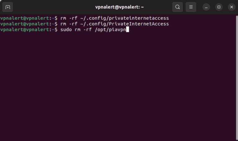 - 如果您想从 Linux 应用程序菜单中删除 PIA 应用程序图标,请输入“sudo rm -rf /usr/share/application/piavpn.desktop”。