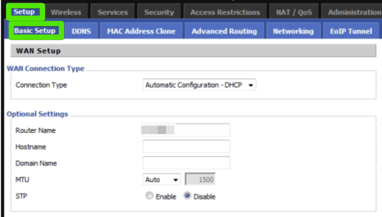 - 打开路由器的仪表板,单击“设置,“ 然后 ”基本设置”。