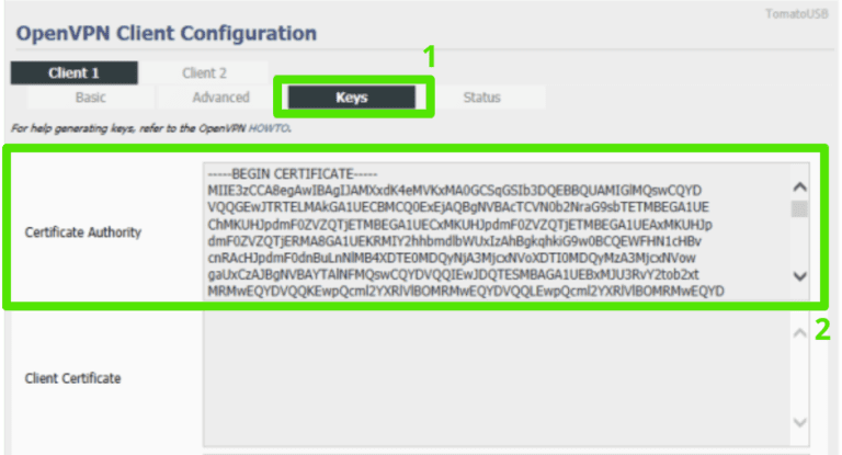 - 点击 ”按键”,然后在“证书颁发机构”文本框下输入或粘贴以下文本: