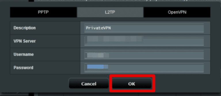 - 密码 = *在此输入您的 PrivateVPN 密码*