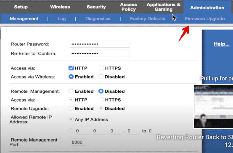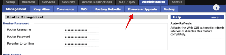 - 转到路由器的设置选项卡,然后单击“固件升级”。