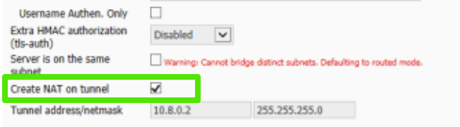 - 选择复选框“在隧道上创建 NAT”。