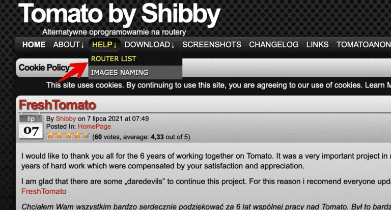 - 检查 Tomato 固件是否适用于您的路由器。如果支持,请复制版本号。