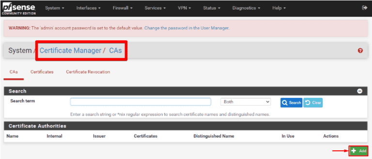 - 在路由器的控制面板中,导航至证书经理。您应该在下面找到这个选项系统。