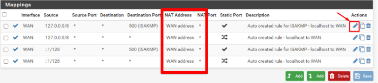 - 在“映射”窗口中,更改每个广域网周长到开放VPN。